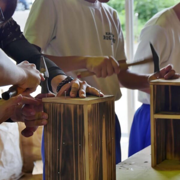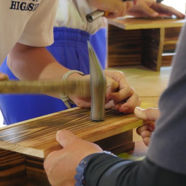 粕屋東中学校の生徒さんをお迎えしての〝職業体験〟2日目最終日、カレンダー付きスマホスタンド本棚の製作。感心する程熱心に取り組む姿に、今年もまた、喜びと活力をいただきました。この体験を通して、ものづくりの楽しさや尊さ、そして少しでも仕事というものに思いを馳せる、1つのきっかけにしてもらえたら幸いです。