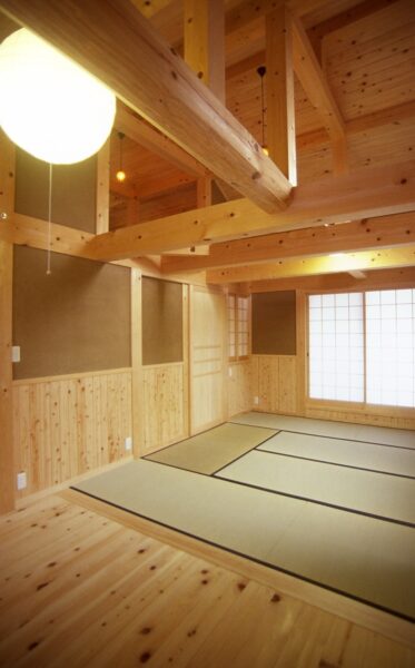 地球民家は、流行に左右されず、気候風土に調和し、時とともに美しさを増す家。将来のライフスタイルの変化にも対応できる、強靭なグリッド構造で長く住み継げる設計です。