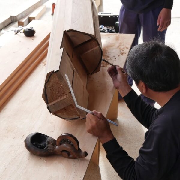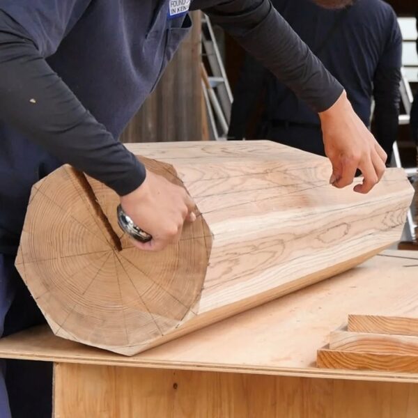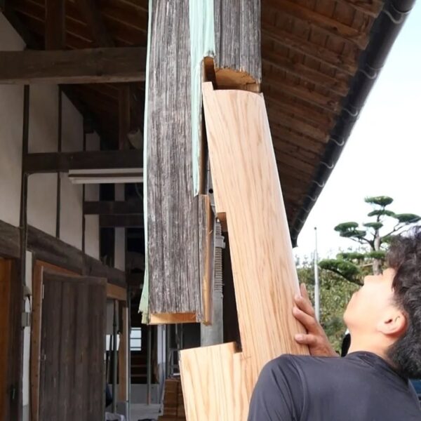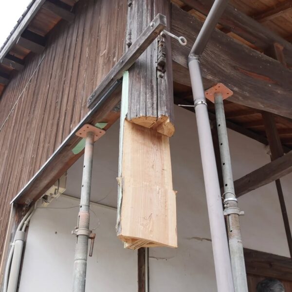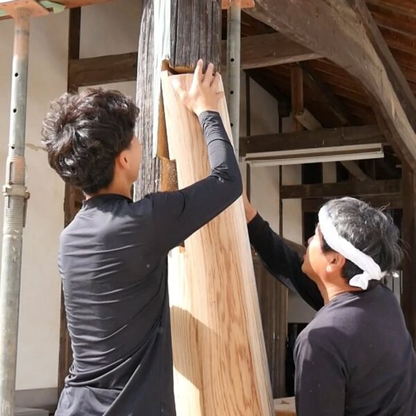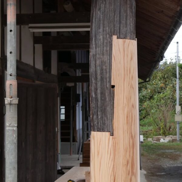 築100年を超える納屋を再生しています。腐食した柱の根元を切り、新たな木を継ぐ「根継ぎ」という作業を行っています。新材は経年による収縮を見越して、既存の柱よりもわずかに太く仕上げます。すべてを新しくするのではなく、残せるものを生かすことで、建物が本来持つ姿と、時の流れが刻んだ味わいを大切にしています。先人の知恵と技術に敬意を払い、この場所に刻まれた物語を未来へと受け継いでいきます。